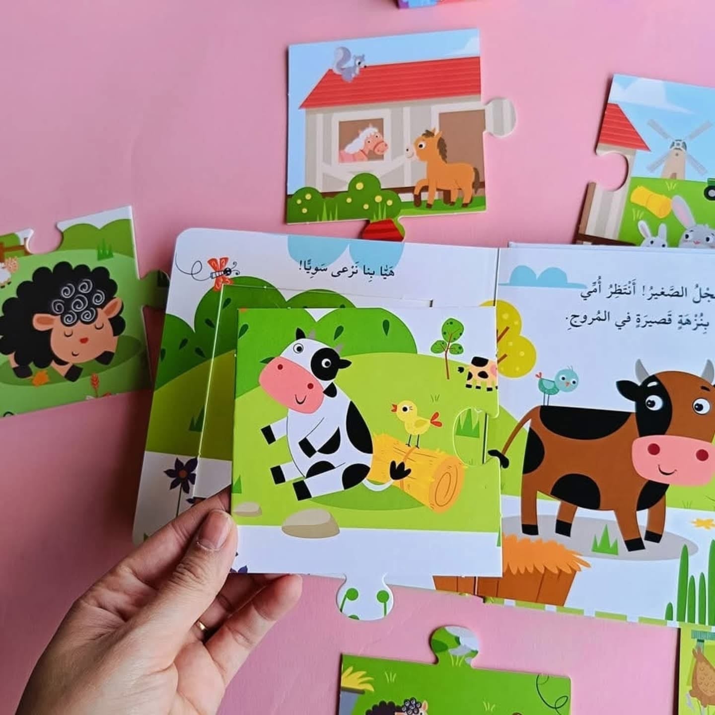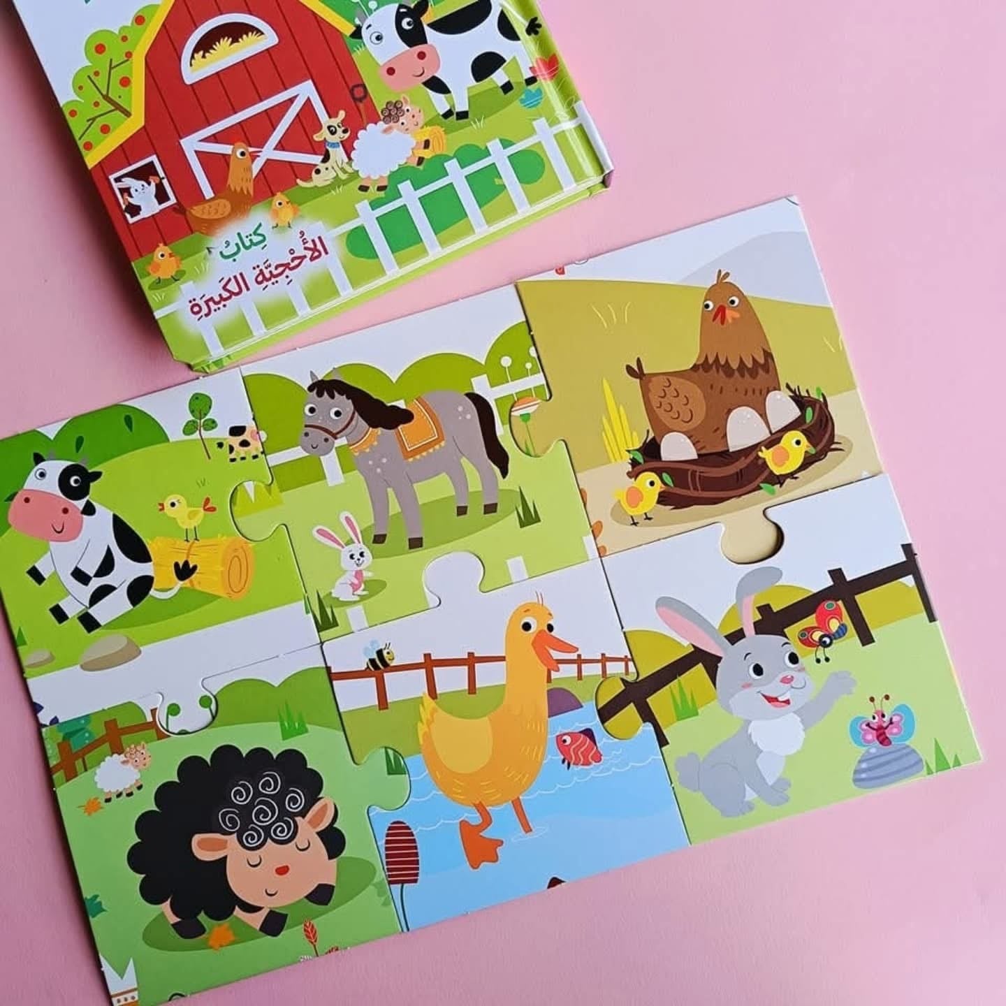 كِتابُ أُحْجِيَّةٍ مِنَ الكَرْتونِ المُقَوْى مُكَوَّنَةٍ مِنْ سِتَّ قِطَعٍ مُصَوَّرَةٍ عَلى الوَجْهَيْنِ حَوْلَ عدة مواضيع مثل الفُصولِ الحيوانات وحيوانات المزرعة وحيوانات البحر ، مَعَ قَلْبِ الصَّفَحاتِ، سَيَتَعَلَّمُ طِفْلُكَ كَيْفِيَّةَ إِدارَةِ الْأُحْجِيَّةِ وَتَرْكِيبِها.