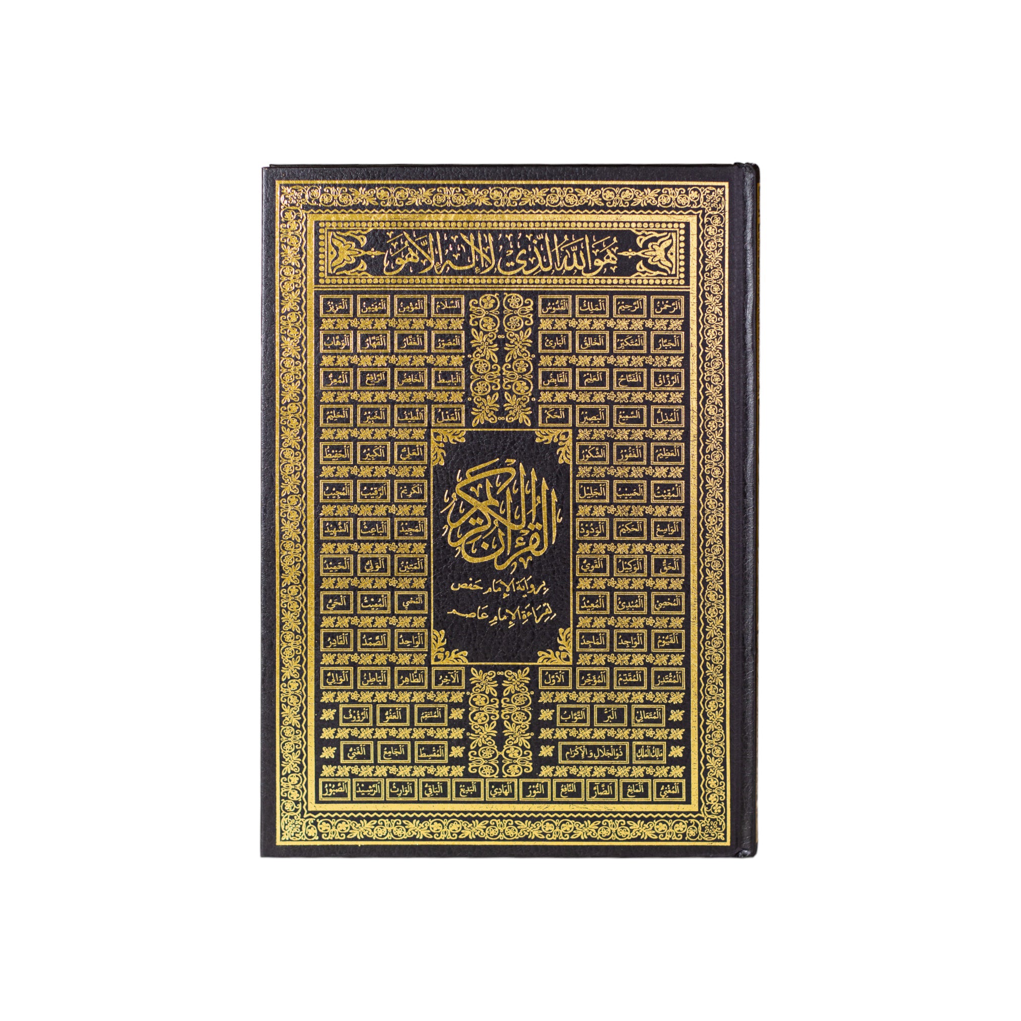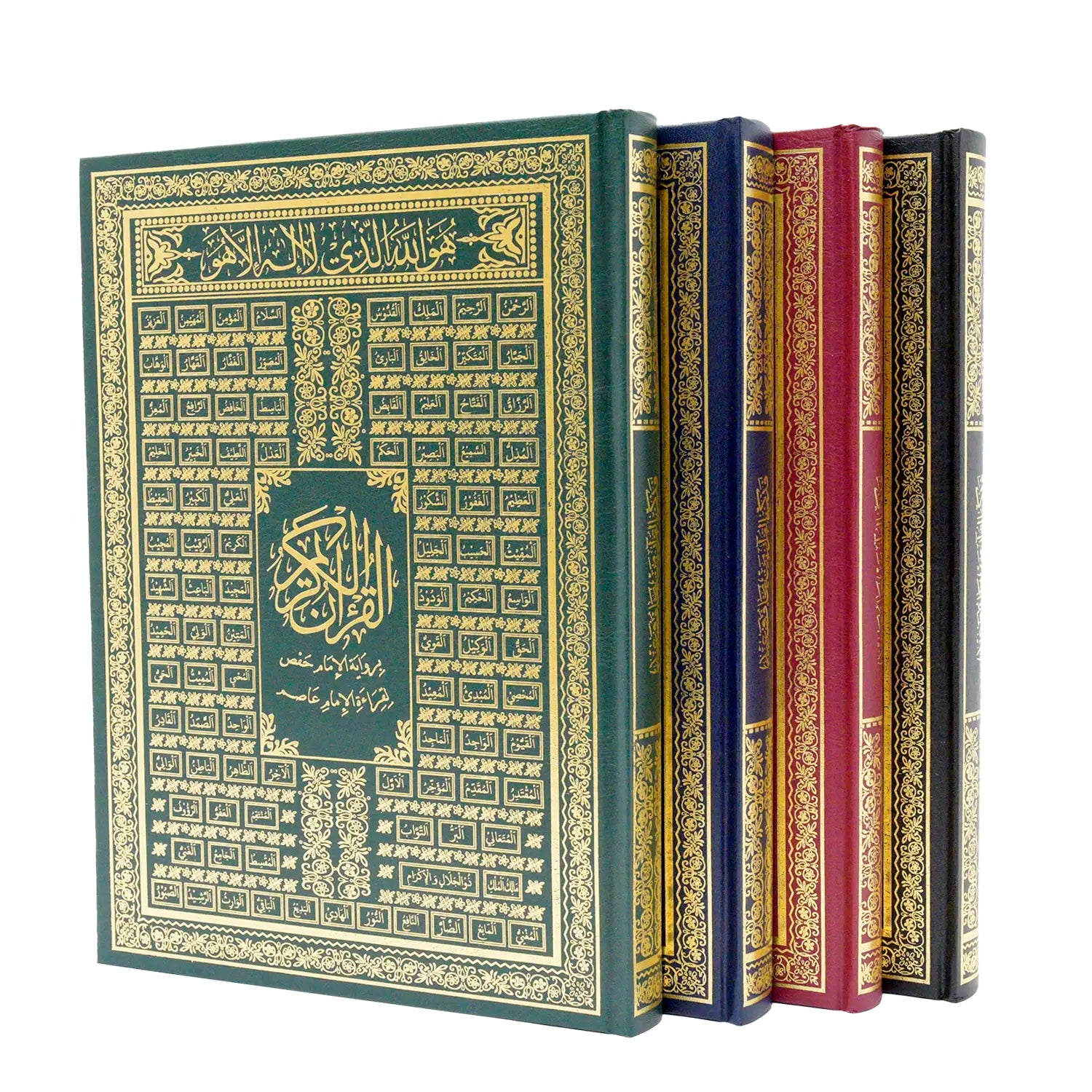 مصحف اسماء الله الحسنى (دبل جوامعي) جميع اسماء الله الحسنى مكتوبة على غلاف المصحف بطباعة حرارية ذهبية لما ذُكر عن النبي صلى الله عليه وسلم والسلف من فضل ذكر اسماء الله الحسنى وأثرها في حياتنا ولما لها من أجر كبير بإذن الله, وميزة هذا المصحف الشريف انه بخط كبير واضح متباين يسهل للقارئ قراءة المصحف بسهولة ويسر, مريح للعين بخلفية طبية للعين وغلاف متين مخملي, وفي الجودة يعتبر مصحف أسماء الله الحسنى من المصاحف المميزة مكتوب بالرسم العثماني برواية حفص عن عاصم من روايات القرآن الكريم , لذلك هو مناسب للاقتناء الشخصي او لإهدائه لكل عزيز علينا ومناسب جدا للتوزيع الخيري لما فيه من جوامع الفضل (كتب الله أجرنا وأجركم وبارك فيهما).
